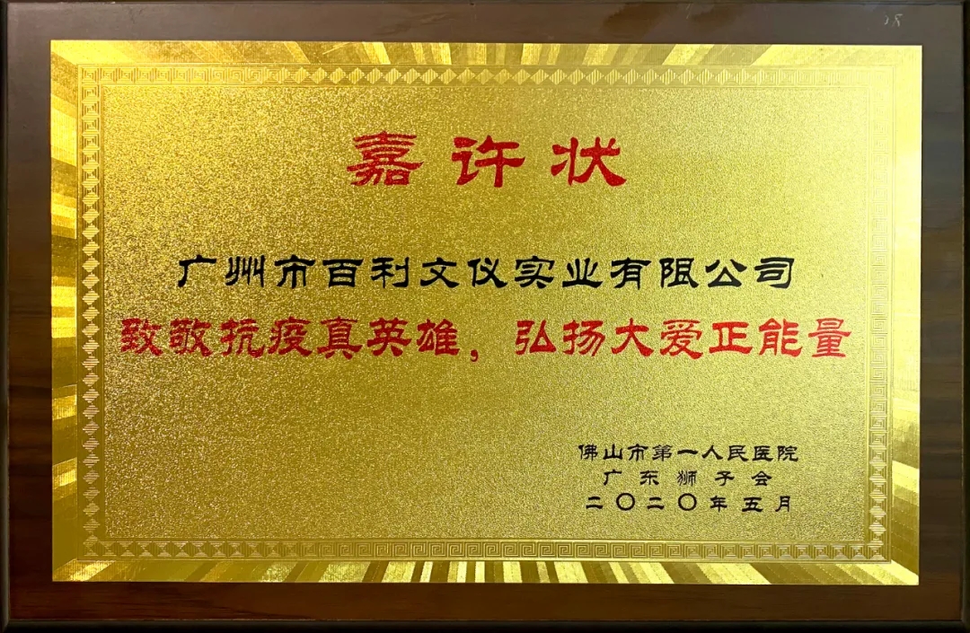 百利集團(tuán)捐贈嘉許狀