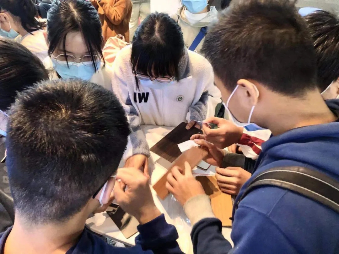 現(xiàn)場進(jìn)行辨別板式材料的小游戲,同學(xué)們踴躍參與。