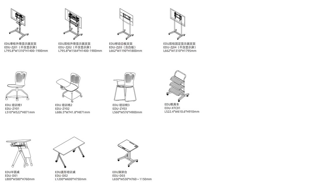 EDU半圓桌可單人使用,也可以自由組合進(jìn)行小組討論,6個(gè)半圓桌能拼成一個(gè)直徑1.6m圓形組合桌。
